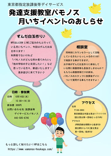 提携先のNPO法人SUN LINEさんご協力のもと行う月いちイベント、ずんだ白玉作りになりました♪(調理実習費300円)